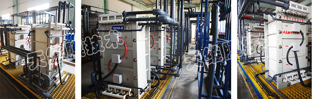 (1)有機(jī)酸生產(chǎn):有機(jī)酸生產(chǎn)過程中需要轉(zhuǎn)化有機(jī)酸鹽為有機(jī)酸全面展示;傳統(tǒng)方法采用離子交換,離子交換柱再生過程消耗大量酸產(chǎn)生大量含鹽廢水新技術;利用雙極膜電滲析水解離作為H+和OH-的供應(yīng)源共同學習,可直接生產(chǎn)有機(jī)酸,無需外加酸深入,副產(chǎn)堿效高,簡化了工藝,避免了環(huán)境污染基礎。 (2)食品醫(yī)藥工業(yè):雙極膜電滲析水解離產(chǎn)生的酸和堿用于食品和醫(yī)藥行業(yè)生產(chǎn)過程中的pH值在線調(diào)整性能,無需外加酸和堿,不引入外來成分對外開放。 (3)環(huán)境保護(hù):雙極膜電滲析水解離作為新型膜分離過程技術創新,可在不引入新組分的情況下將水溶液中的鹽轉(zhuǎn)化成相應(yīng)的酸和堿,為某些物質(zhì)資源的再生和回收資料、減少廢物排放廣泛應用、消除環(huán)境污染提供了新的途徑 項(xiàng)目現(xiàn)場