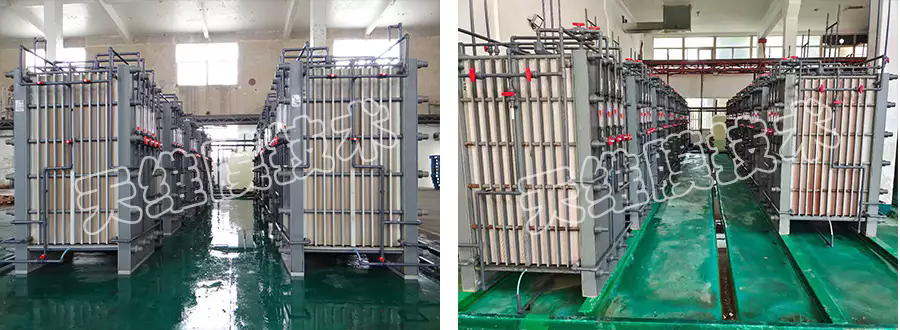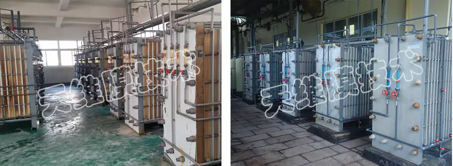 化成箔生產(chǎn)的腐蝕工段會產(chǎn)生硫酸/硫酸鋁、硝酸/硝酸鋁廢水,采用擴散滲析裝置可將廢酸中的硫酸、硝酸進行有效回用技術發展,代替?zhèn)鹘y(tǒng)的中和處理法,大幅度降低了殘渣量和含鹽量推動並實現,酸回收率>80%用上了,金屬離子截留率>90%綜合運用。目前,擴散滲析酸回收技術(shù)在化成箔行業(yè)廢酸處理中覆蓋率已達85%以上創造。